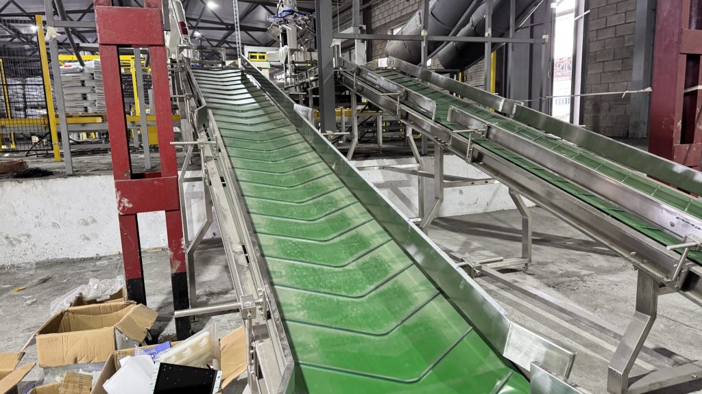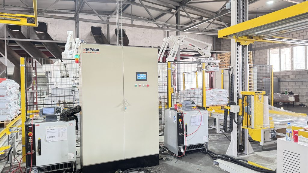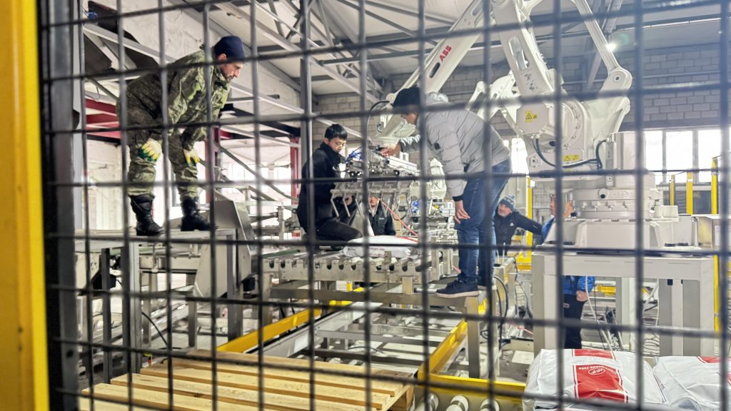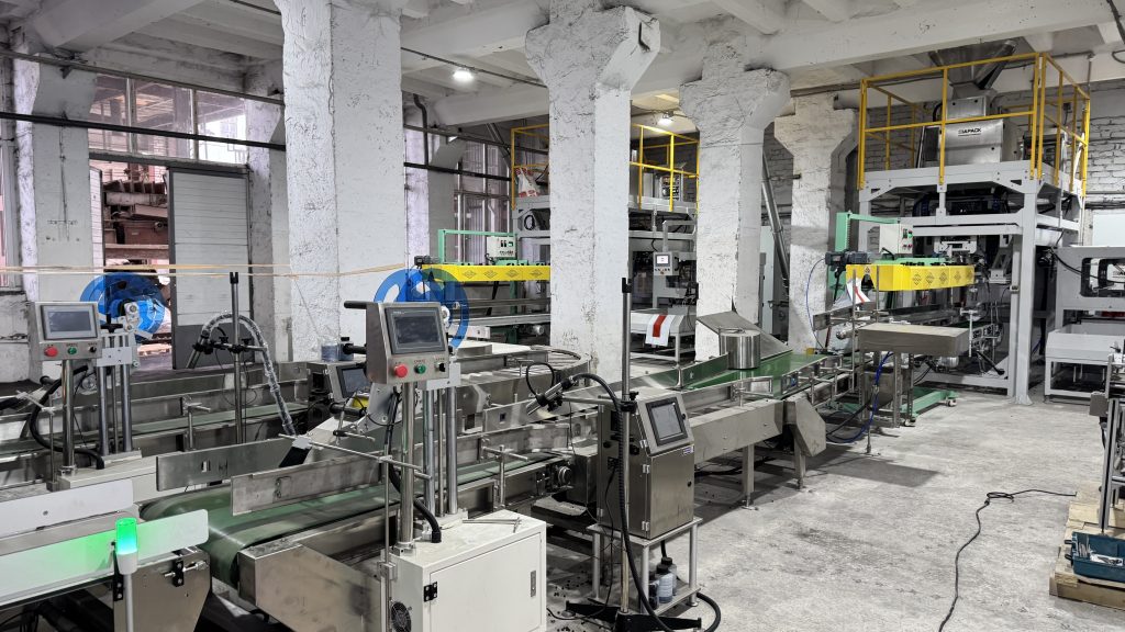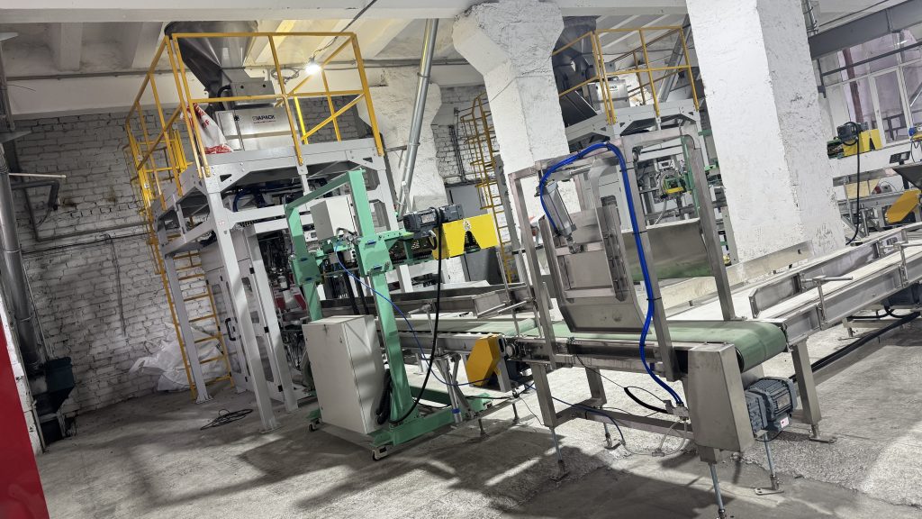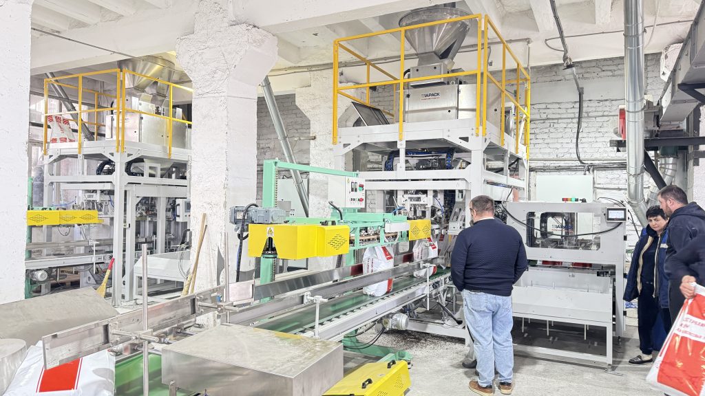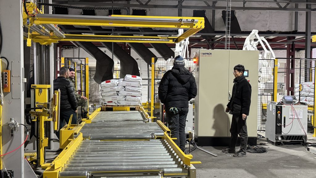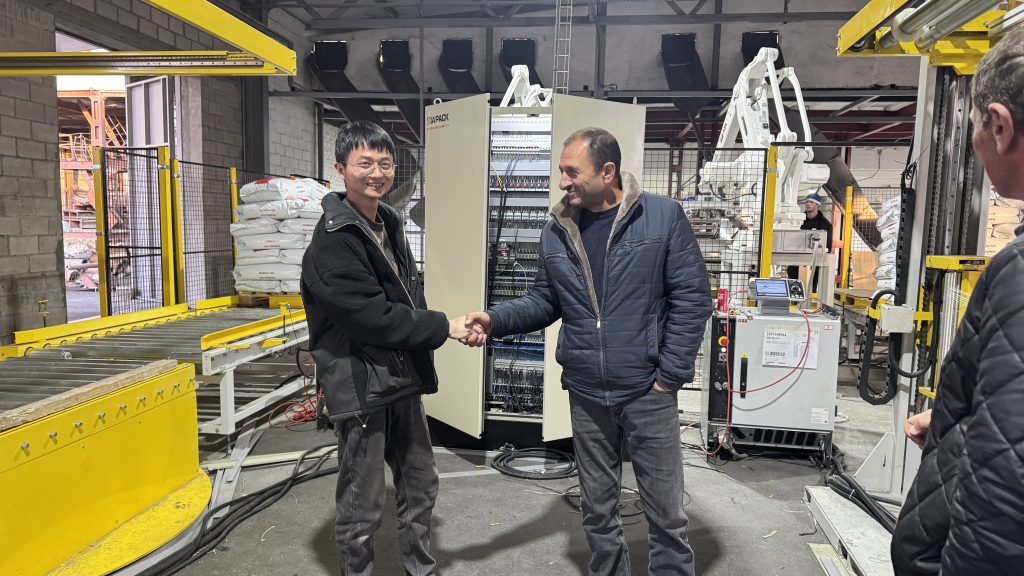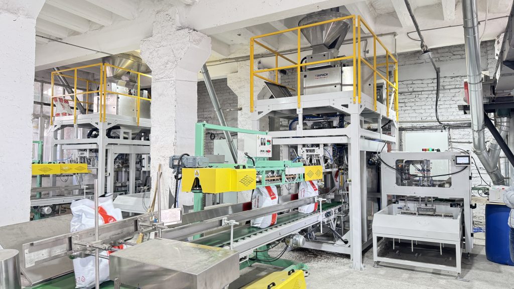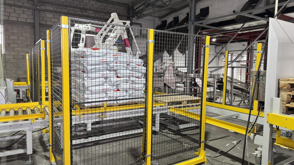 Აქ ხარ: მთავარი » სიახლეები » Two units 25kg pet food automatic weighing bagging conveying and palletizing line start running in our client factory