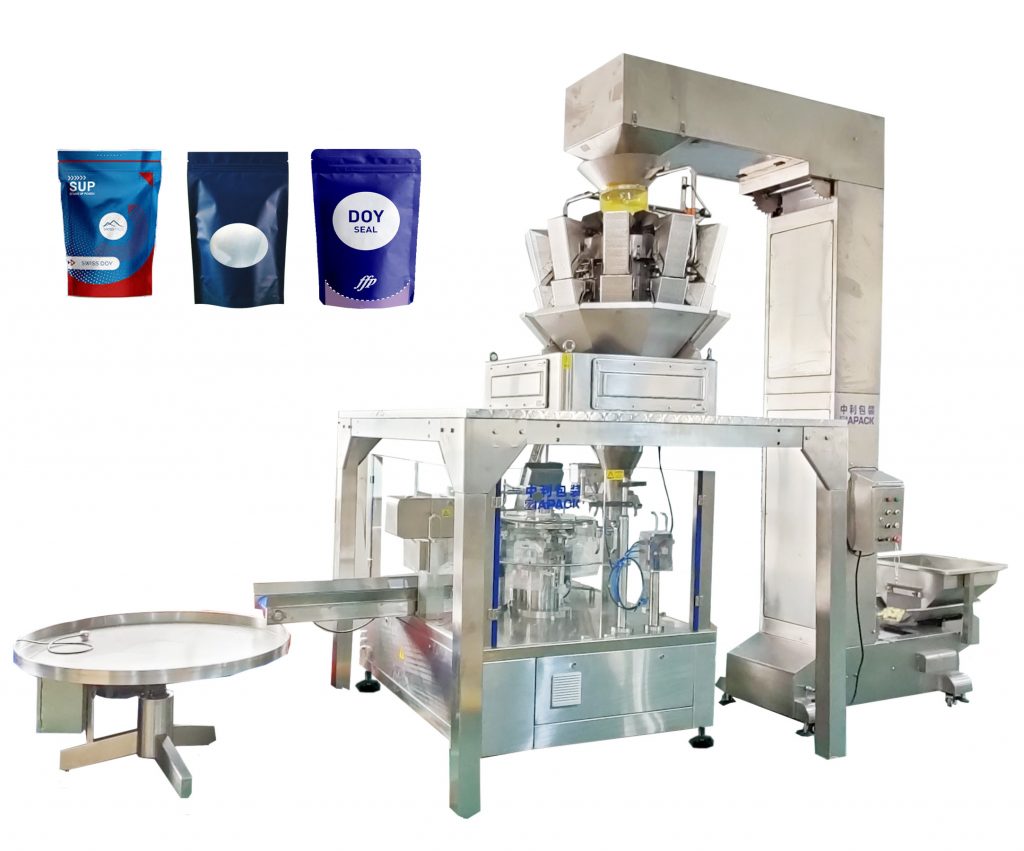 წინასწარ დამზადებული ჩანთა შევსება და ბეჭედი მანქანა, რომელიც ეფექტურობისა და სტაბილურობის 8 სამუშაო სადგურისგან შედგება, ხაზს უსვამს სტენდის ჩანთა პაკეტს, ზუფის ჩანთა, ჩამოსვლის ჩანთა და სხვადასხვა წინასწარ დამზადებული ჩამოსხმებს. თანამშრომლობს სხვადასხვა დოზირების სისტემებით (კომბინირებული წებოვანი / წრფივი ვაგერი / აჟუთი ხრახნი / დგუშის შემავსებელი) და ავტომატური მოხსნის კონვეიერები, ფართოდ გამოიყენება გრანულები, თხევადი და ფხვნილი.