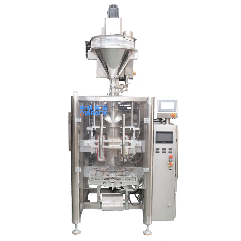 This machine are special design for packing powder product into pillow bottom bag .It is widely use for packing wheat flour and chemical powder .This machine unit are including one set ZL2000 auger filling machine one set ZL520 vertical bag forming filling machine .one set Open mouth bag conveying machine and control system .The whole machine control by PLC and operate by color touch screen .